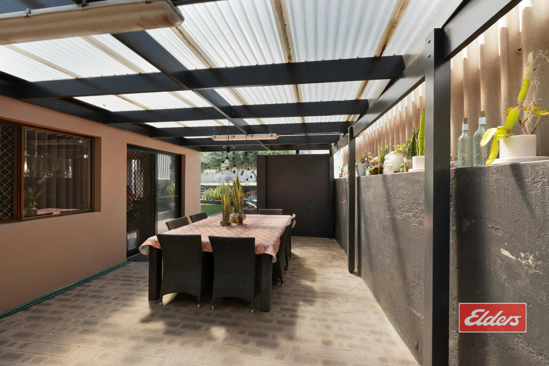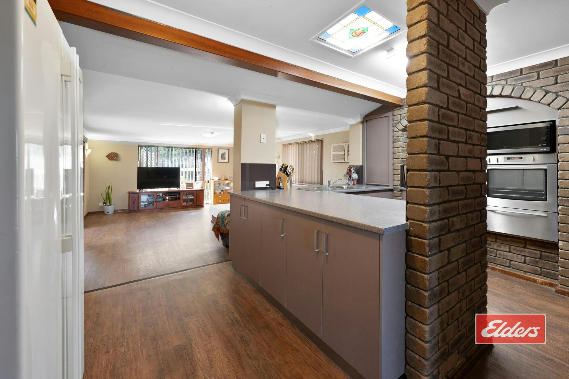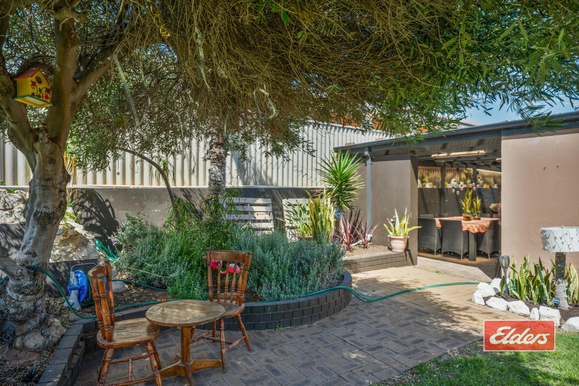 Outdoors, the tiered backyard offers a mix of lawn and established gardens, including a mature olive tree, all within a secure, fully fenced setting. Side access to a double garage adds practicality for families with extra vehicles, boats or trailers.