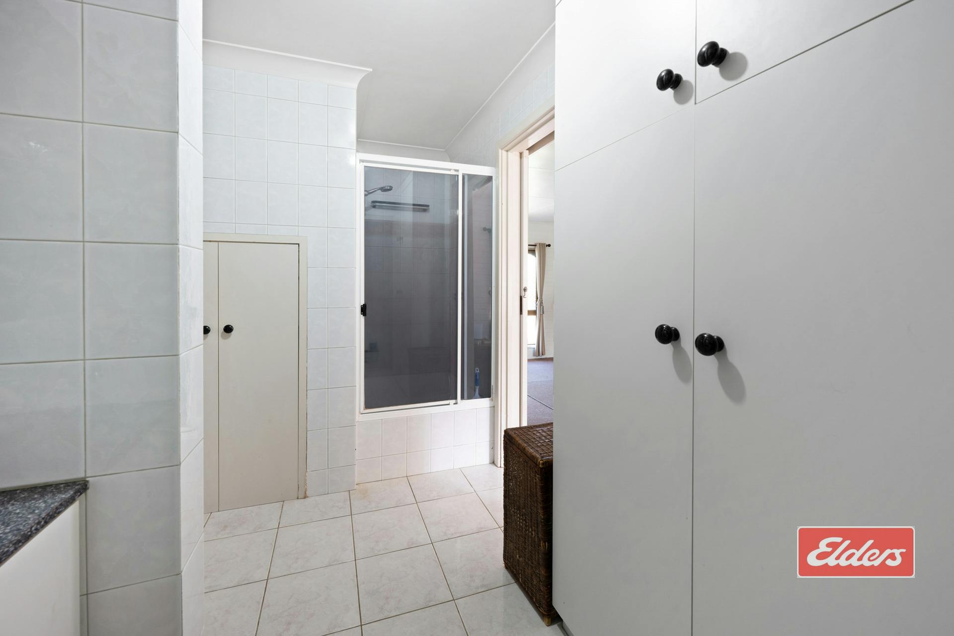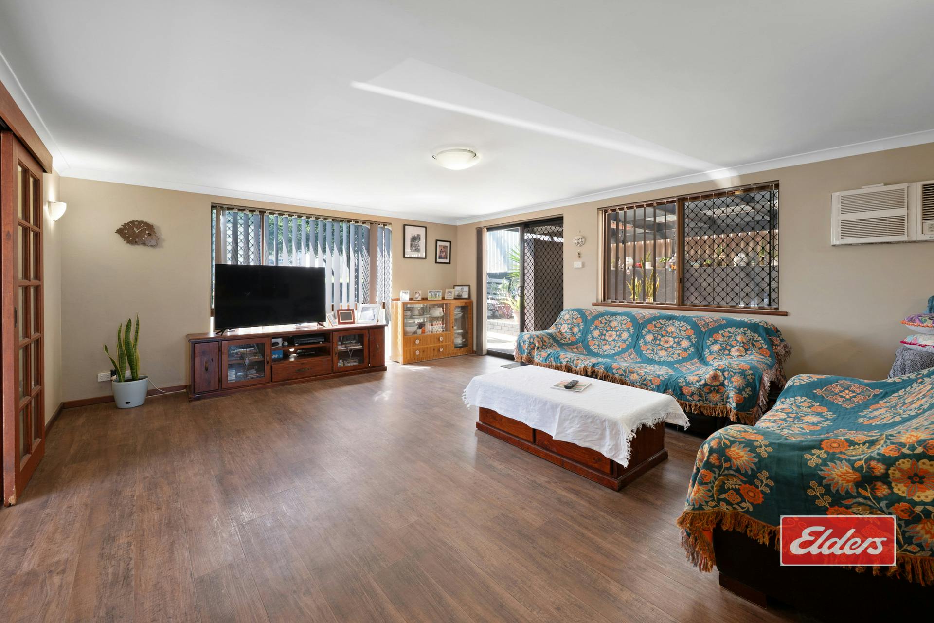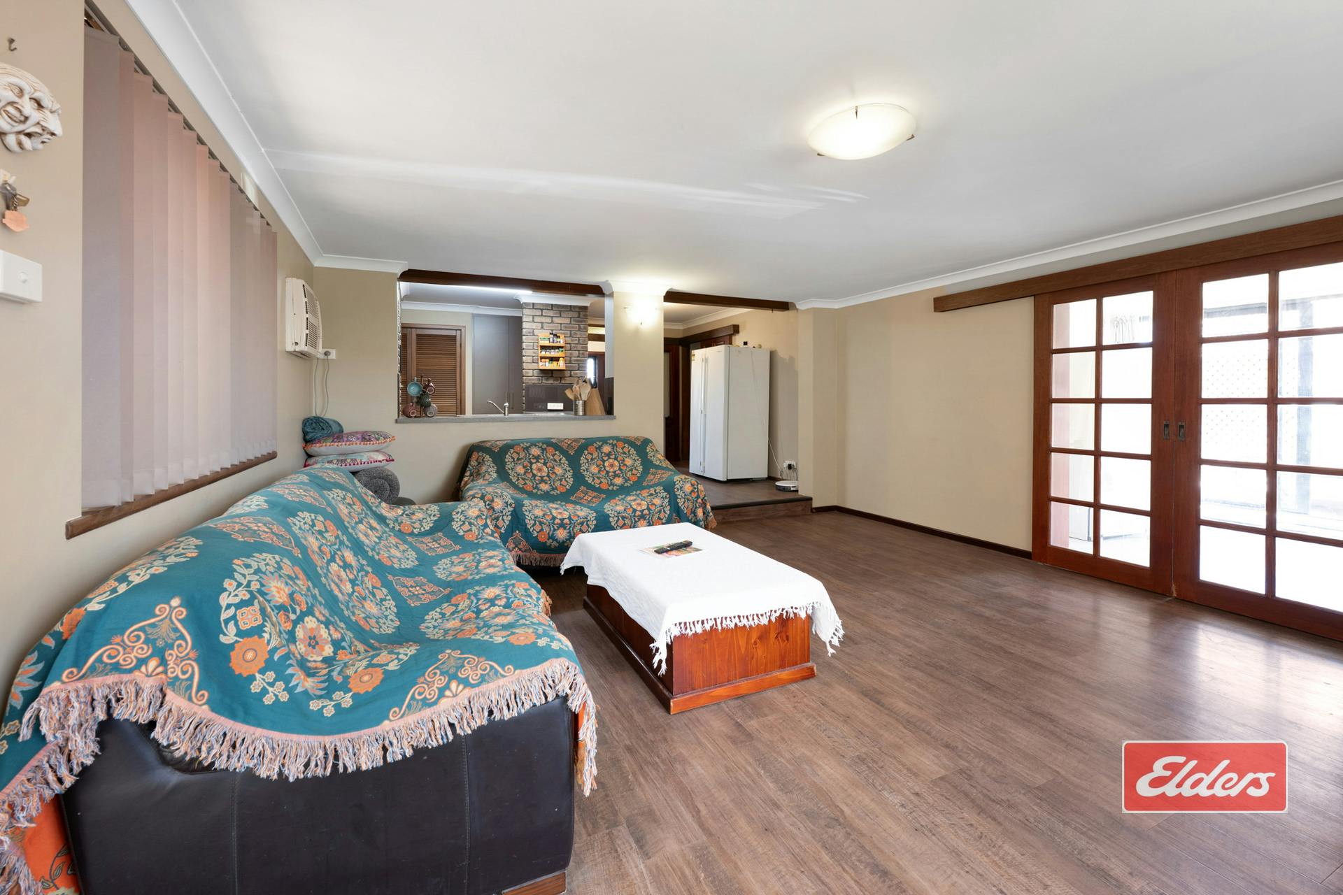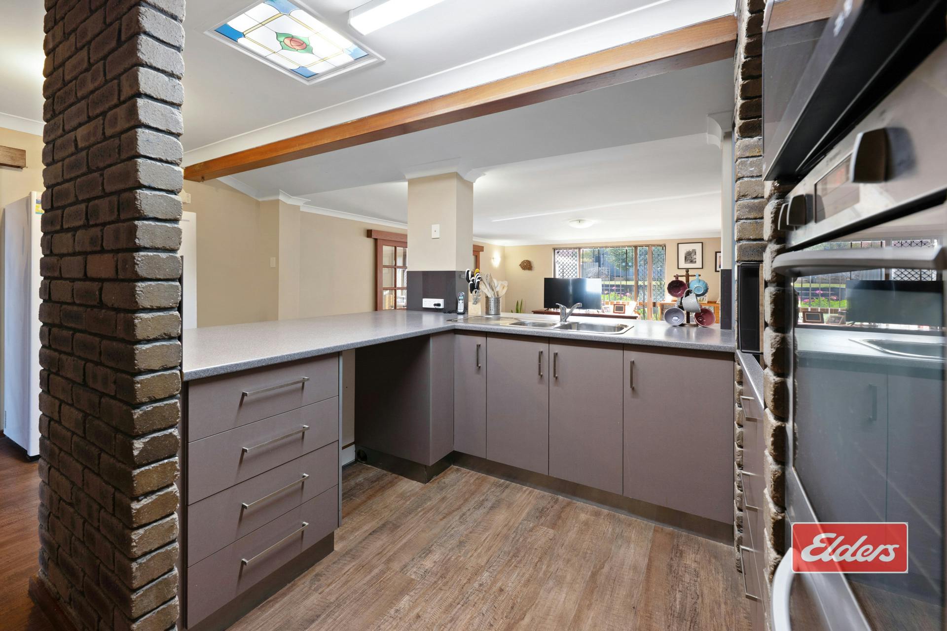 Outdoors, the tiered backyard offers a mix of lawn and established gardens, including a mature olive tree, all within a secure, fully fenced setting. Side access to a double garage adds practicality for families with extra vehicles, boats or trailers.