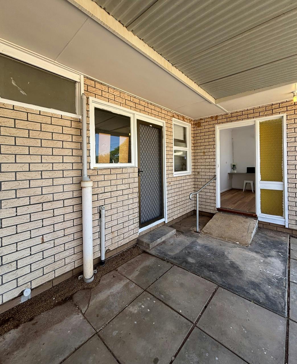 - Brick clad home with colourbond roof and new front concrete pad for a future patio